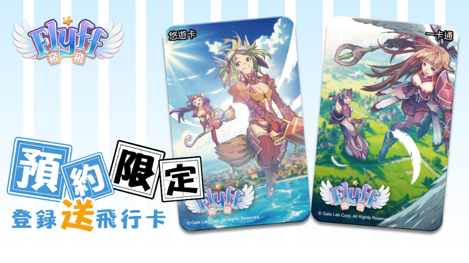 預約飛行即刻啟航!《Flyff 飛飛》事前登錄活動正式開啟,玩家們只要登入94hi會員帳戶完成預約飛行,就可以領取「飛行補給箱」;進行登錄抽獎,還有機會獲得限量版遊戲實體周邊「飛行卡(一卡通/悠遊卡)」,滿滿的福利要獻給一直熱愛《Flyff 飛飛》的飛行夥伴們!