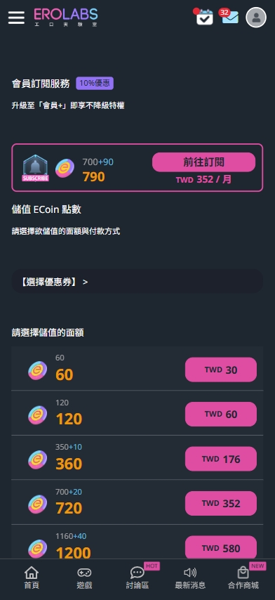 《工口實驗室EROLABS》儲值流程