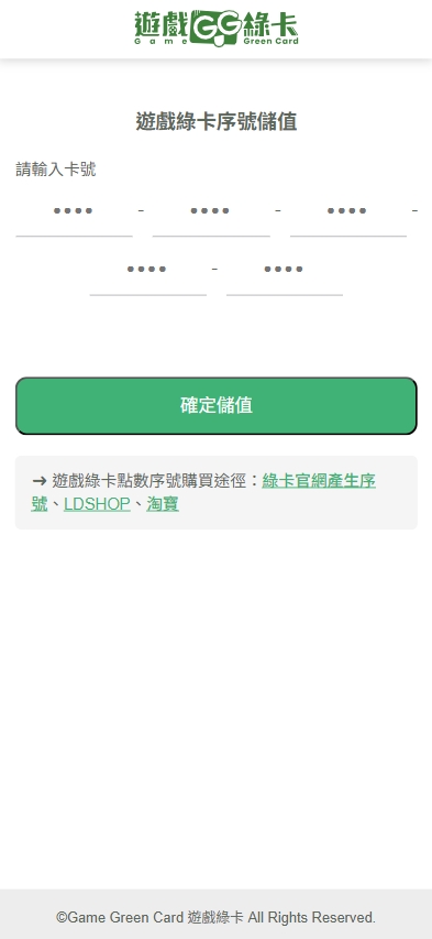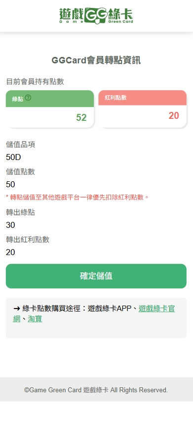 點數不足者,可至遊戲綠卡官網購買