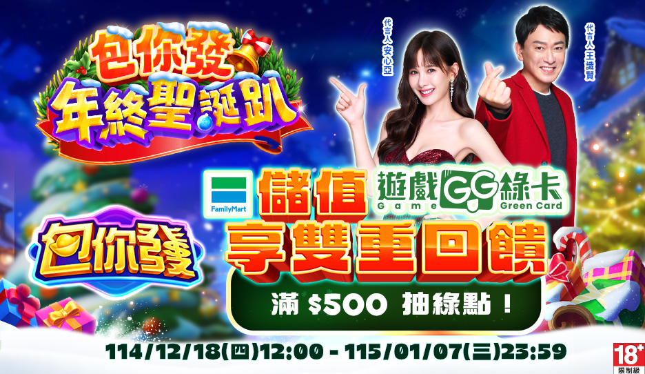 ※本活動限定【全家超商】、【遊戲綠卡】官方販售之遊戲綠卡點數。