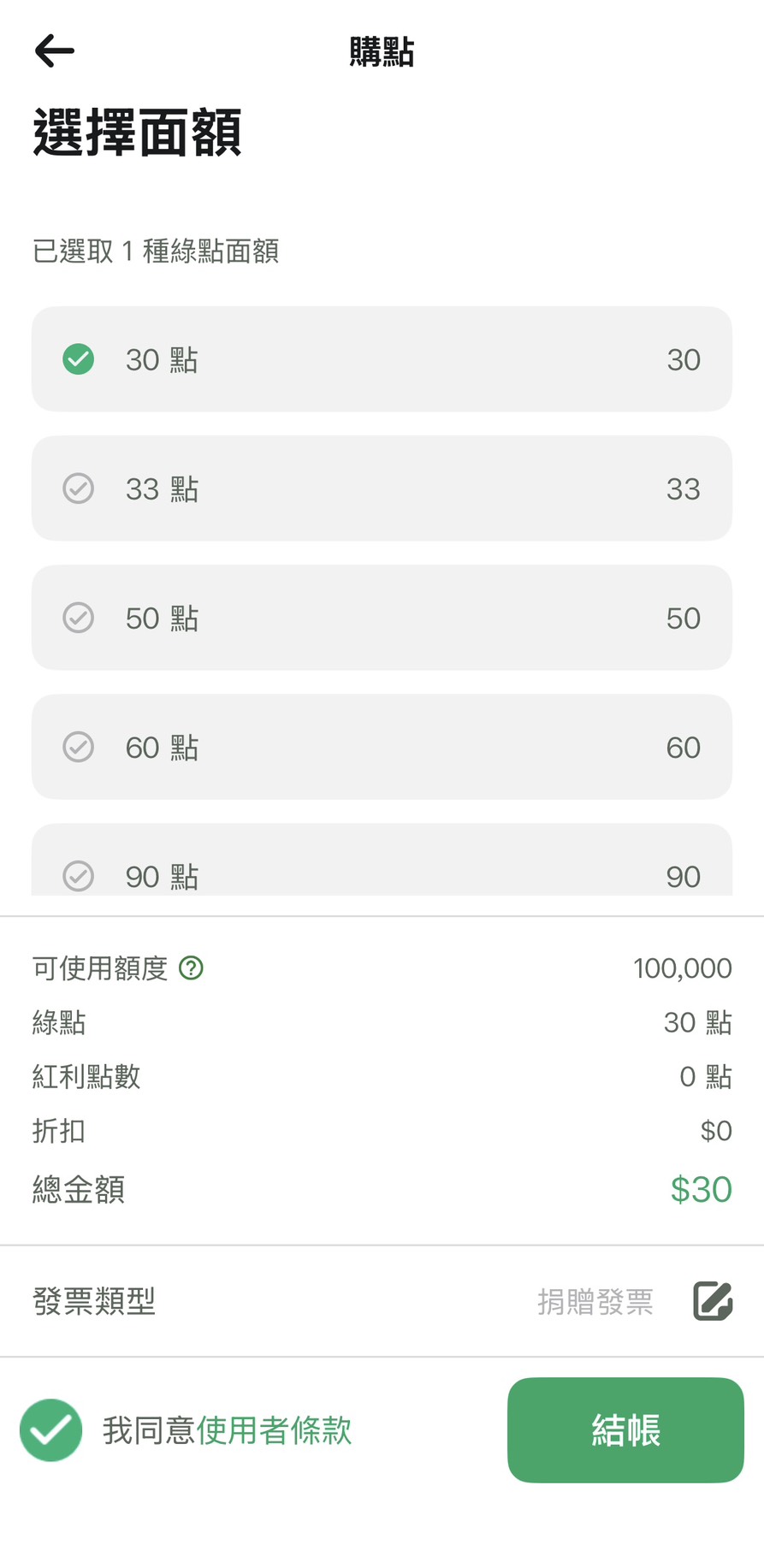 最新消息 一般 立即使用街口支付購買綠點 回到列表 2026/04/01 親愛的會員您好:為提供更便利、多元的支付體驗,現在起您可以透過【街口支付】快速完成綠點購買,輕鬆儲值更即時! 使用方式1.購買時選擇【街口支付】2.選擇欲購買的點數面額3. 開啟街口支付完成付款4.交易成功,點數立即入帳!不用輸入卡號掃碼快速付款即時儲值,輕鬆上線不卡關 回到列表