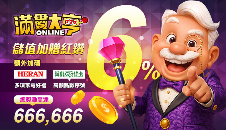 - 滿貫大亨官方保留更換等值贈品以及變更活動內容或終止活動的權利。